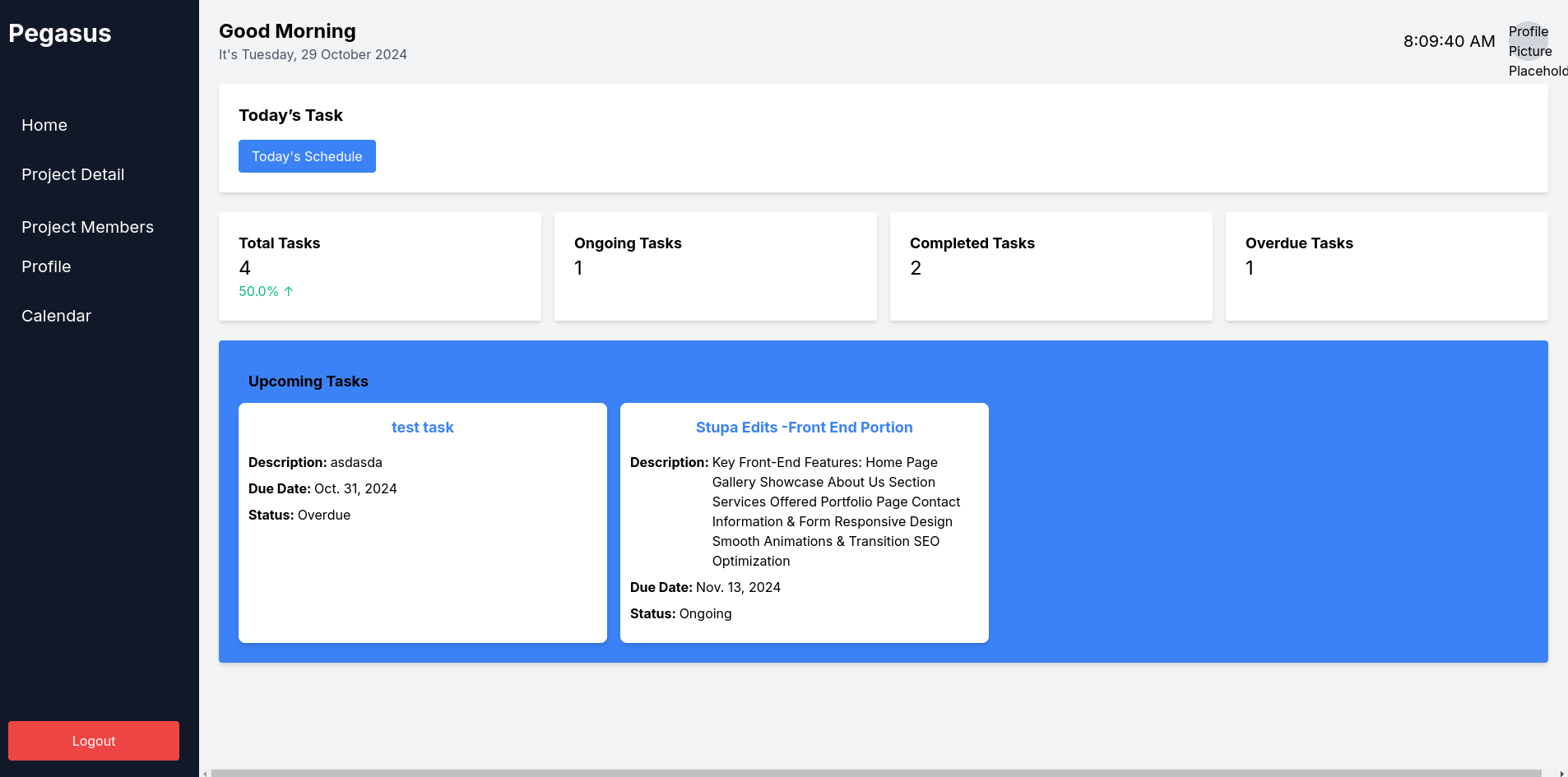 In this Task Management system we are able to add task , complete date , etc i has also calender system which has once clander dynamically schedule the work, leave day etc. And aother functionality like add member, assing task etc also done from this system .